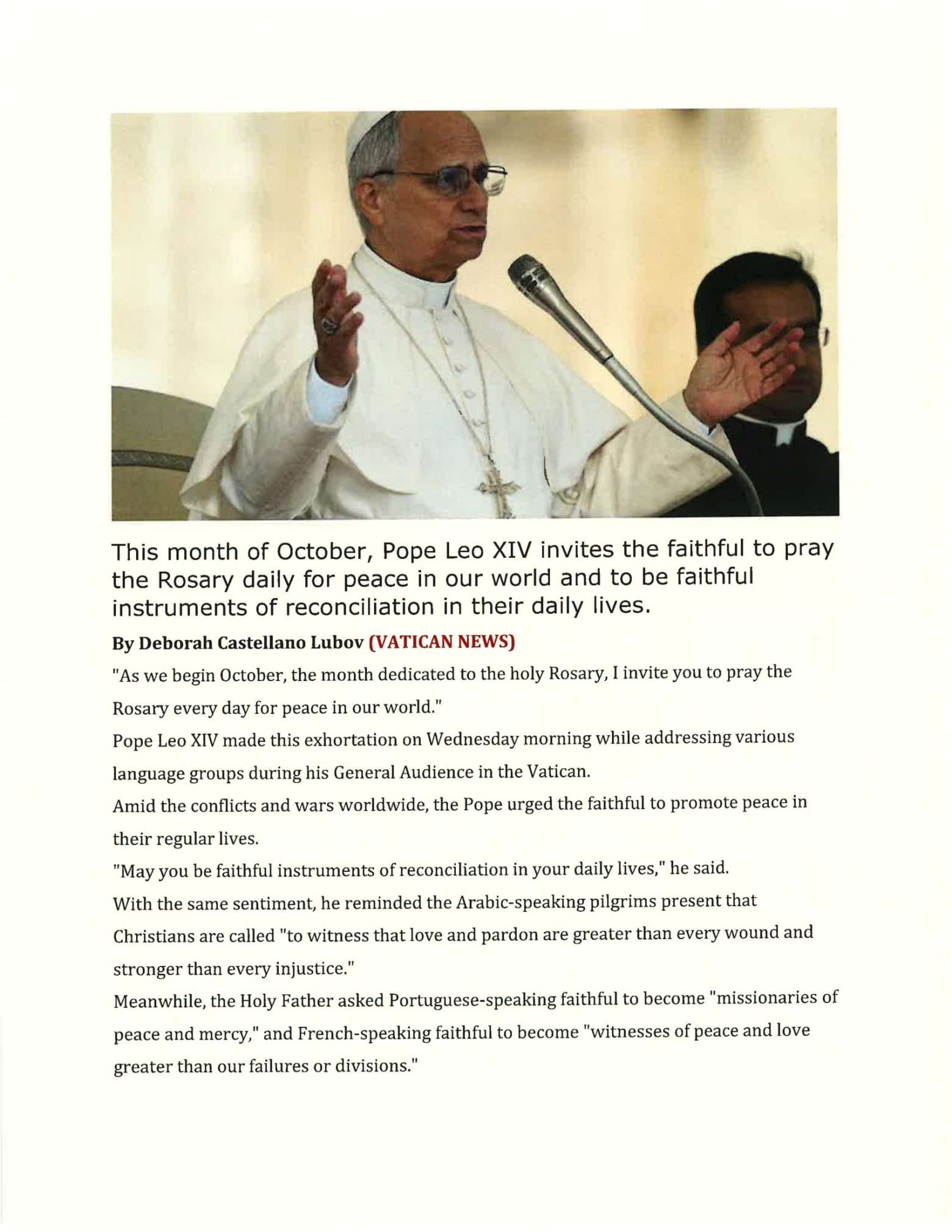 Monday, October 6 at 7:00 pm ~ Catechism of the Catholic Church, Parish Hall 2nd floor,                                                                             Paragraphs 268-354