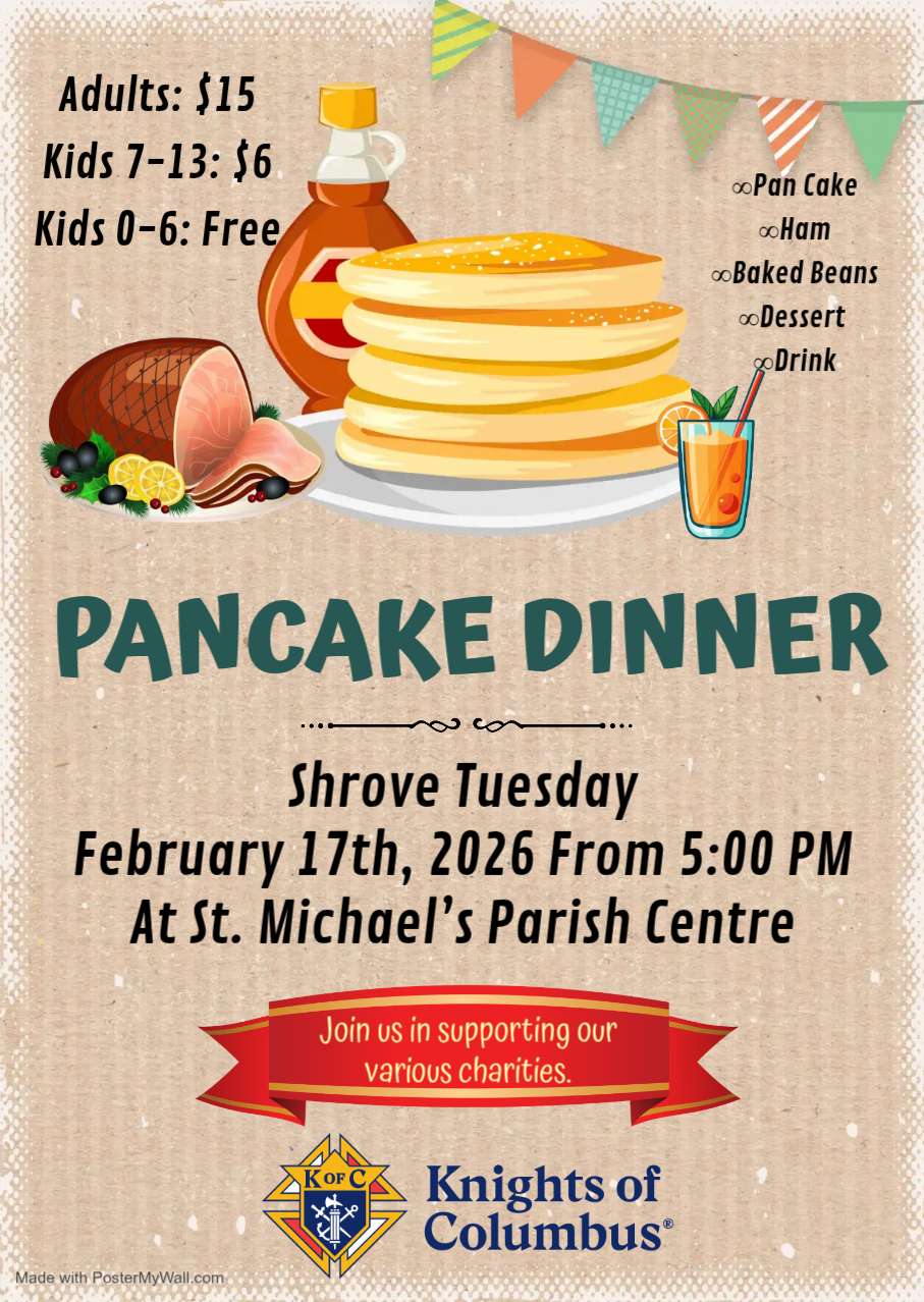 Tuesday, February 17 at 5:00 pm ~ Shrove Tuesday, Knight's Pancake Dinner, Parish Hall