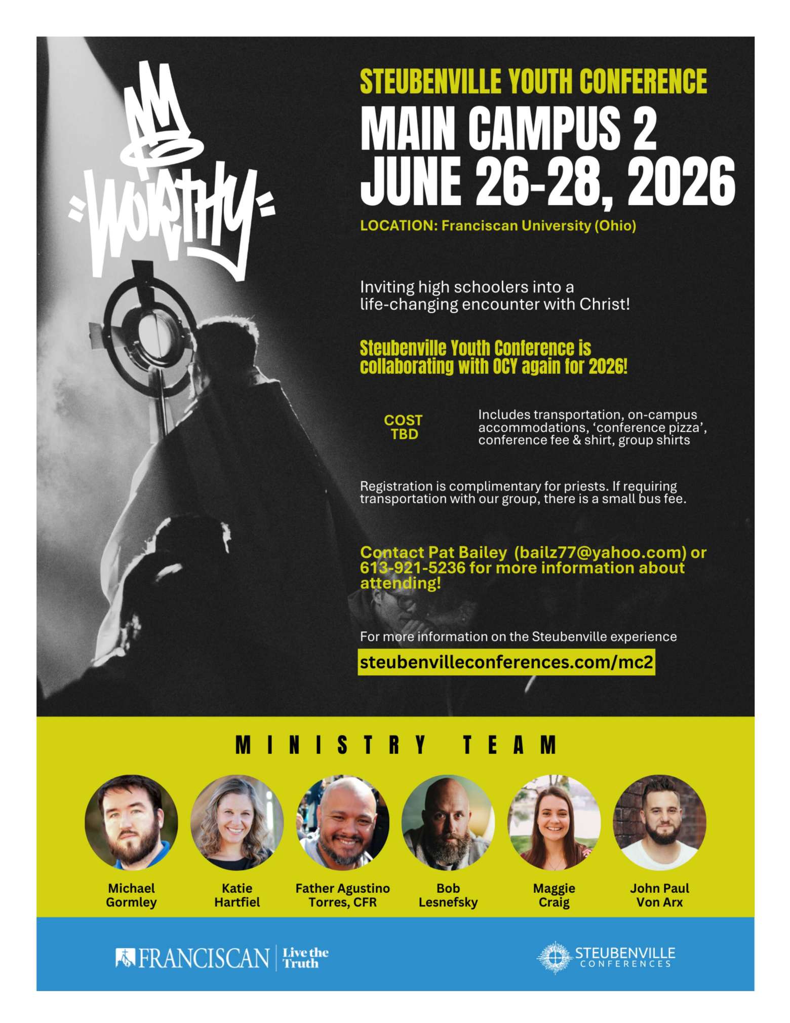 Sunday, February 8 from 6:30 to 9:00 pm ~ Quinte Catholic Youth Group, Church Basement